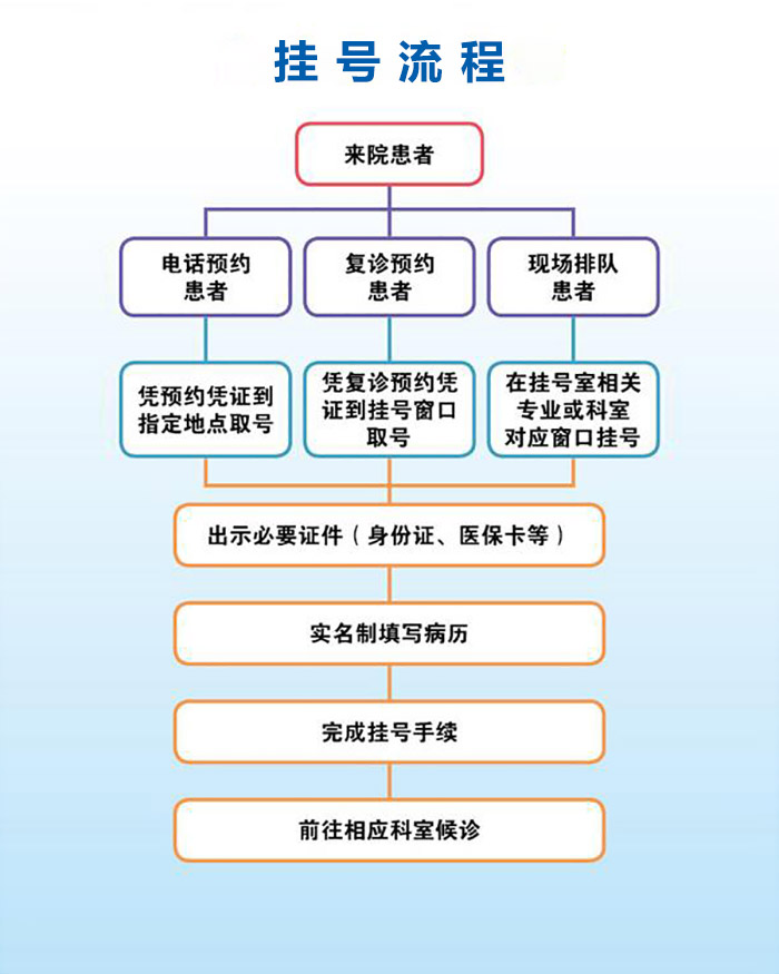 (2)复诊挂号:患者需按照复诊预约时间准时到院,并在前台完成诊查费缴费。